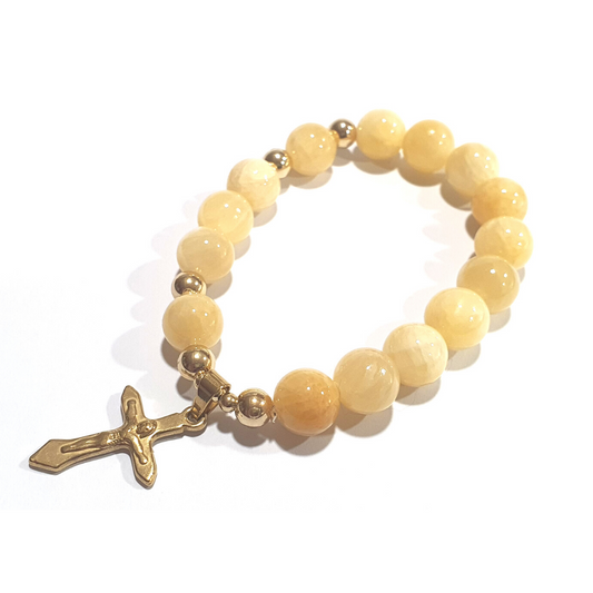 Calcite Rosary in 10K spacers with Stainless Cross
