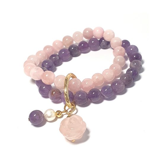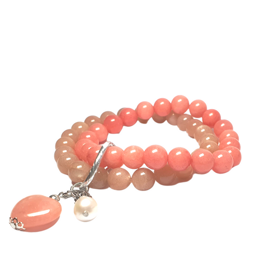 Rose quartz and ruby quartz double layer gemstone bracelet