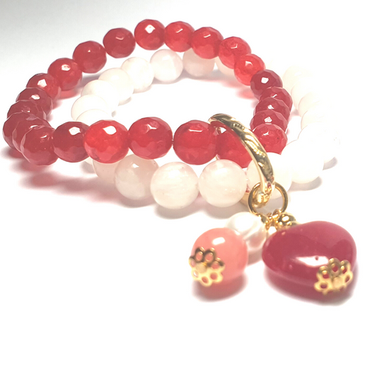 High Quality Rutilated Quartz and Red Agate Double Layer with Heart Charm