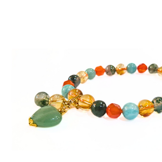 Health and Wealth Combo - Amazonite, Citrine, Moss Agate, and Red Agate with Charm