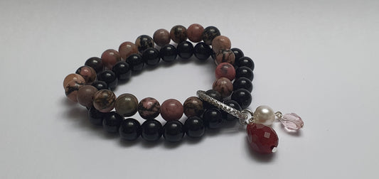 Green Aventurine, Watermelon Fluorite, Hematite Rolled Bracelet