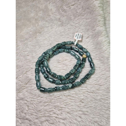 Blue Water Jade Barrel Necklace 24” – Grade A Jadeite for Prosperity & Good Health