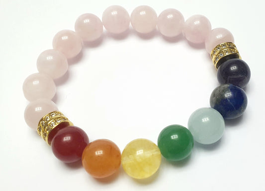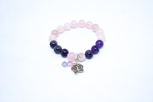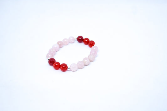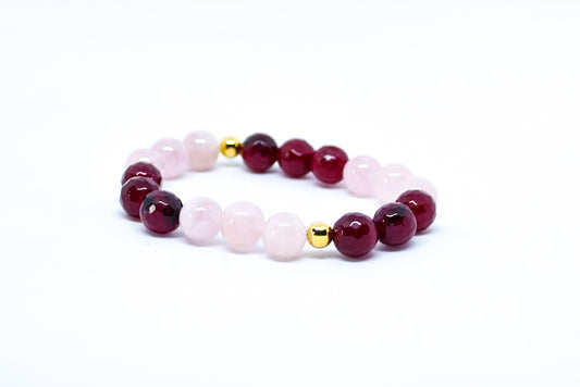 Rose quartz and ruby quartz double layer gemstone bracelet