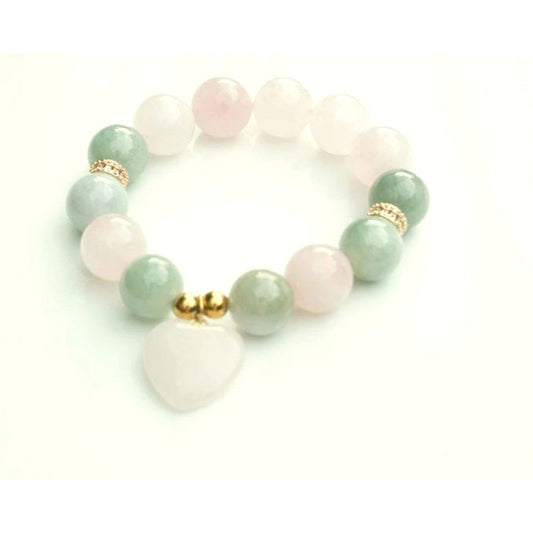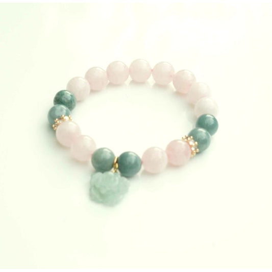 Rose Quartz and Jade Bracelet with lucky flower charm