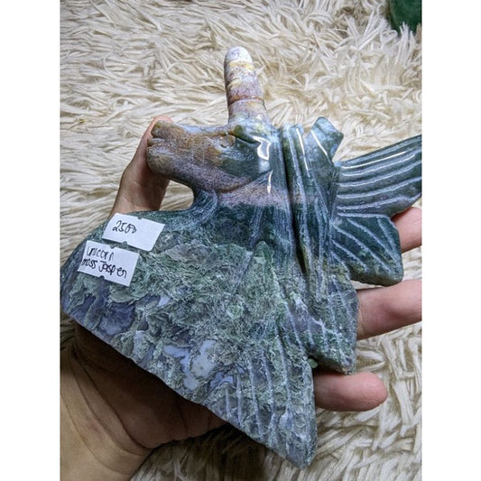 ocean jasper and moss agate unicorn carving