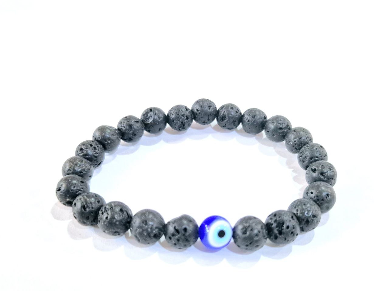 Authentic Semi-Precious Black Lava Stone Diffuser with Evil Eye Gemstone Crystal Bracelet (Beadsize: 8mm)