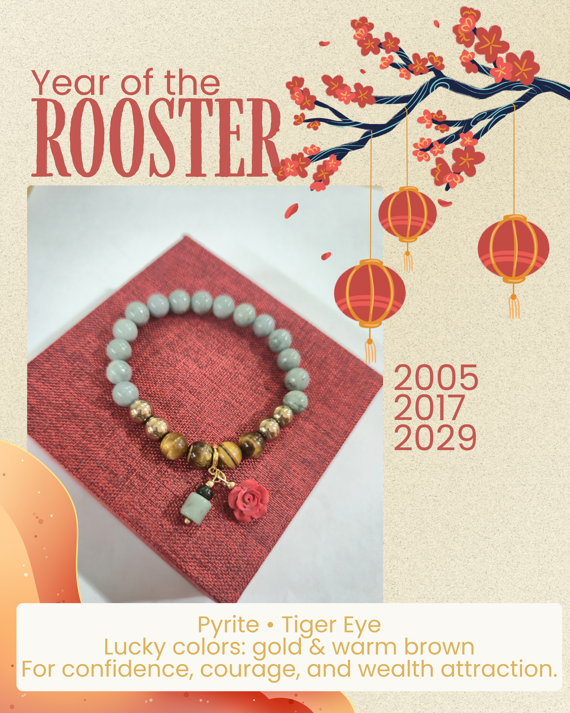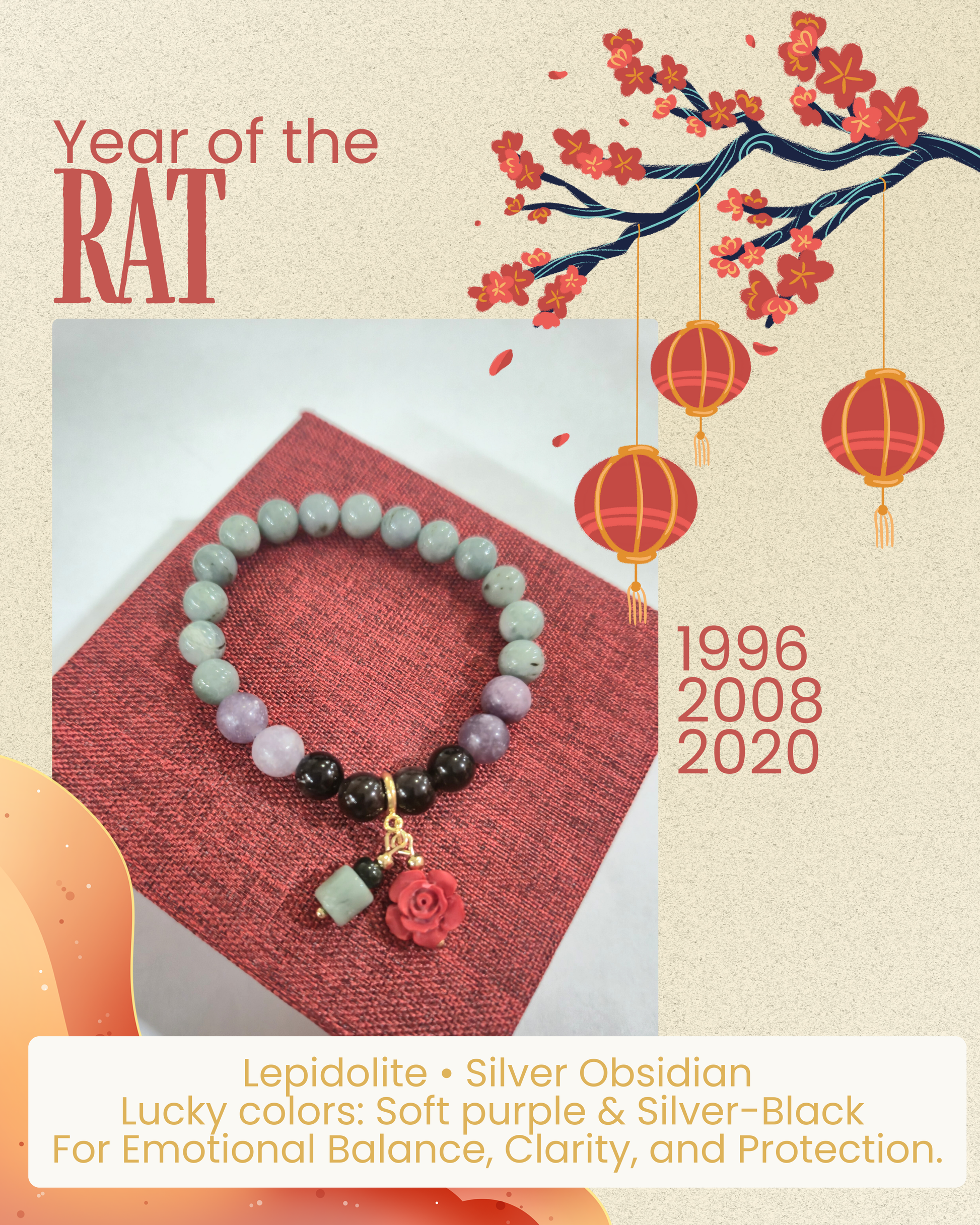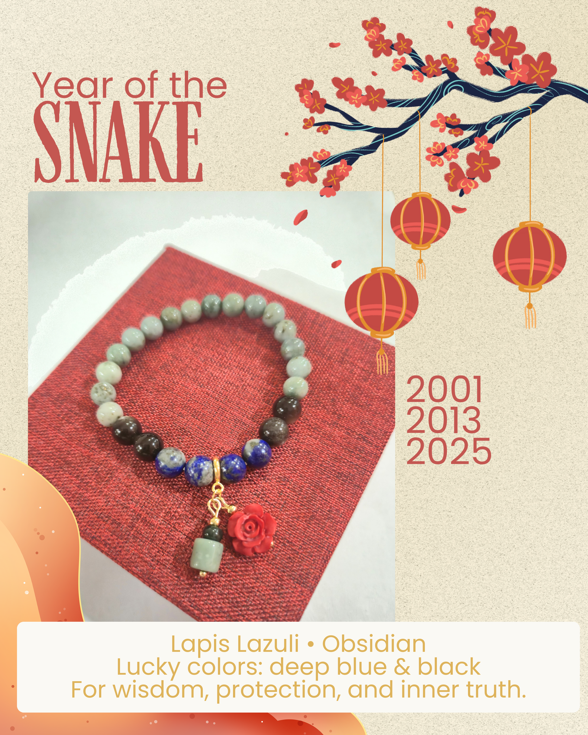 Each piece comes with a free cinnabar flower charm, a symbol of blessings, prosperity, and positive transformation.