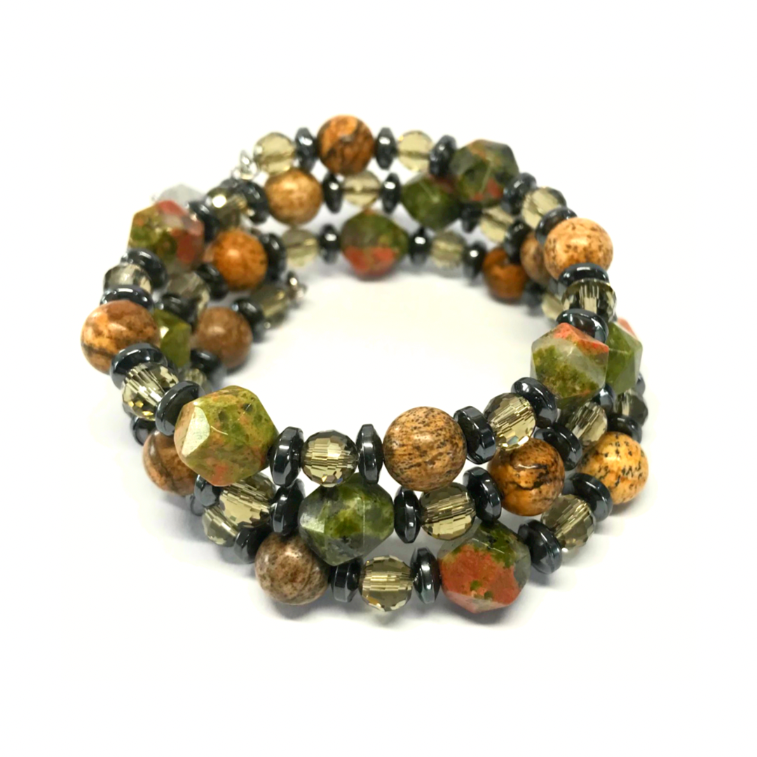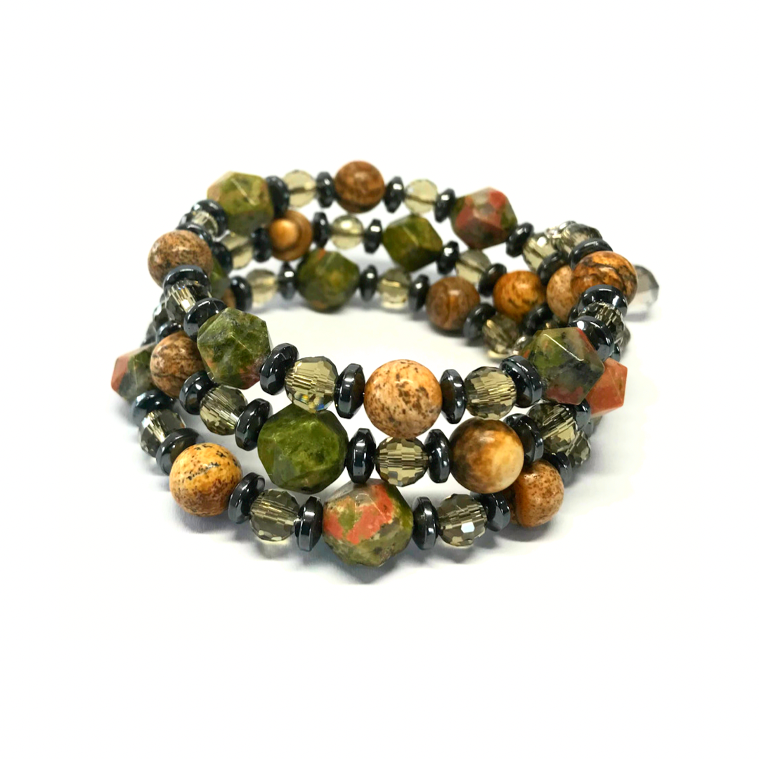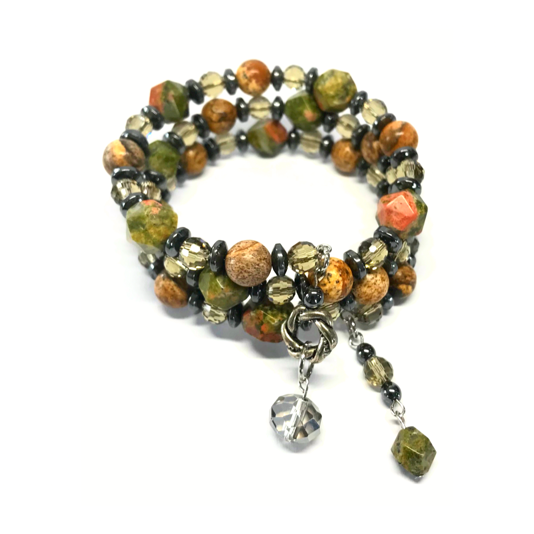 • Materials: Unakite Faceted, Picture Jasper, Hematite, Glass Crystal Beads