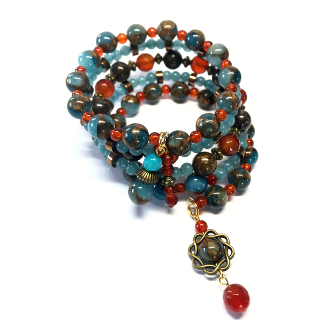 Red Agate, Bronzite, Dark Jasper, Aquamarine, Hematite Rolled Bracelet Rolled Bracelet
